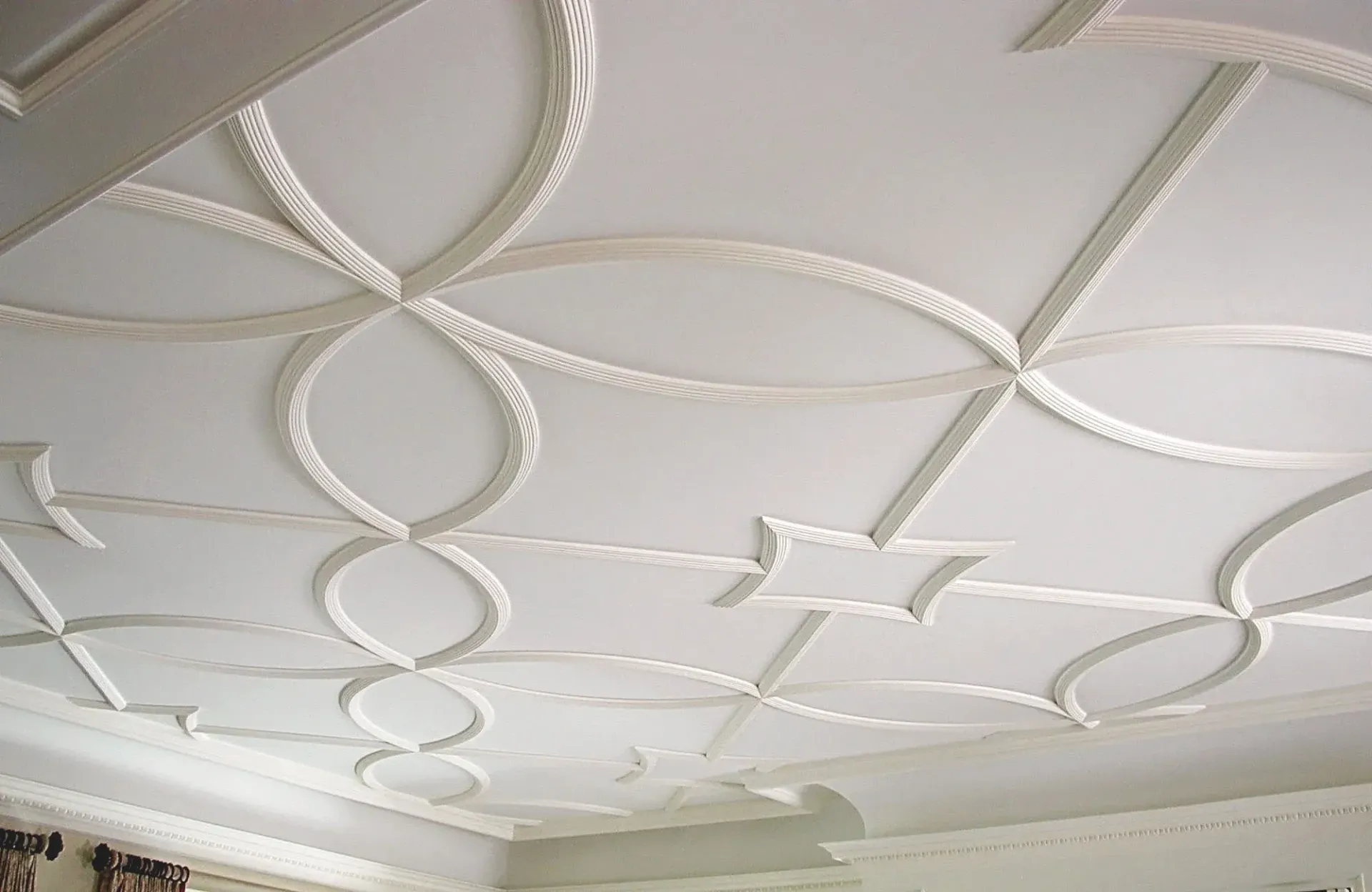 Crown moulding connects the walls and ceiling with a smooth transition. We install it to hide uneven edges and to give rooms a more polished appearance.